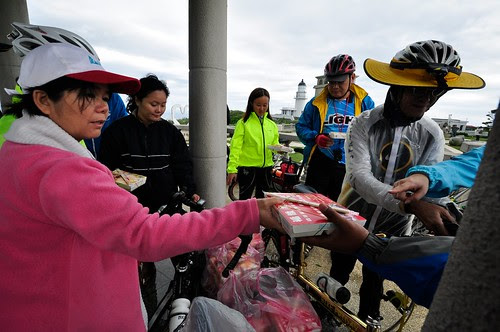 At the lighthouse, the winds were even stronger. We trembled as most of us were wet with sweat with the howling winds. To make it even more interesting, we chose the spot to have our break and lunch. Some hid in the support vehicle to escape the winds and have a meal.